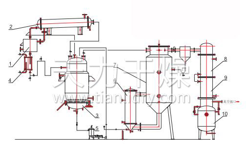 1-冷卻器 2-冷凝器 3-提取器 4-油水分離器 5-過(guò)濾器 6-加熱器 7-蒸發(fā)器 8-冷凝器 9-冷卻器 10-收集罐